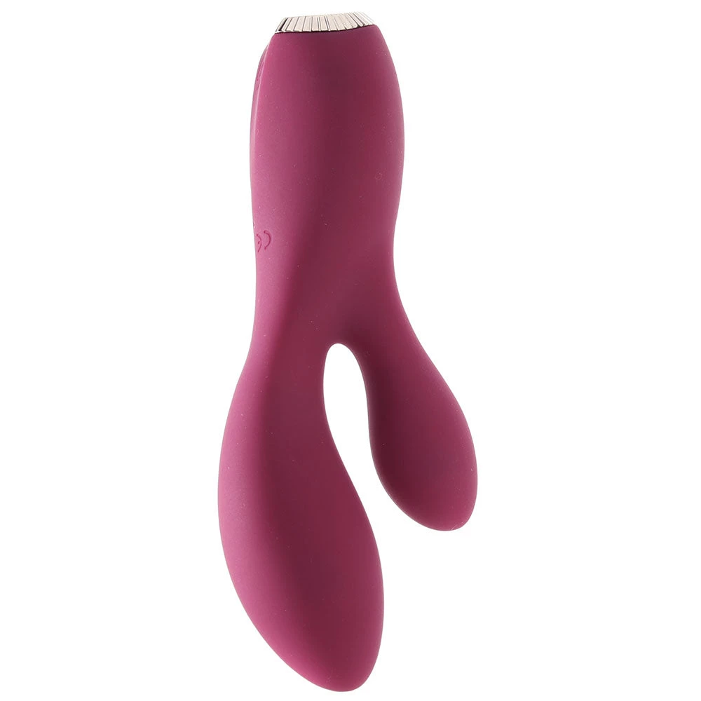 Featuring a beloved double-the-pleasure shape that targets g-spots and clitorises simultaneously, Cabernet offers up a sexy swollen shaft with lots of curvy G-seeking surface area to play with. Meanwhile, an equally curvy external stimulator reaches up from below, lavishing lots of love on your (or your partner’s) clitoris.Â