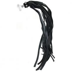In black faux leather and glass, the Ouch! Diamond Studded Flogger can be easily spot-cleaned as needed.