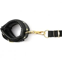 Making things even more play-ready, you’ll also get four gorgeous black vegan leather cuffs complete with glossy gold hardware. Clip the cuffs to the ends of the tether straps, and play away. Needless to say, if bed bondage isn’t in the cards for the evening, you can absolutely make use of the cuffs in any sexy bound-up scenario(s) that comes to mind