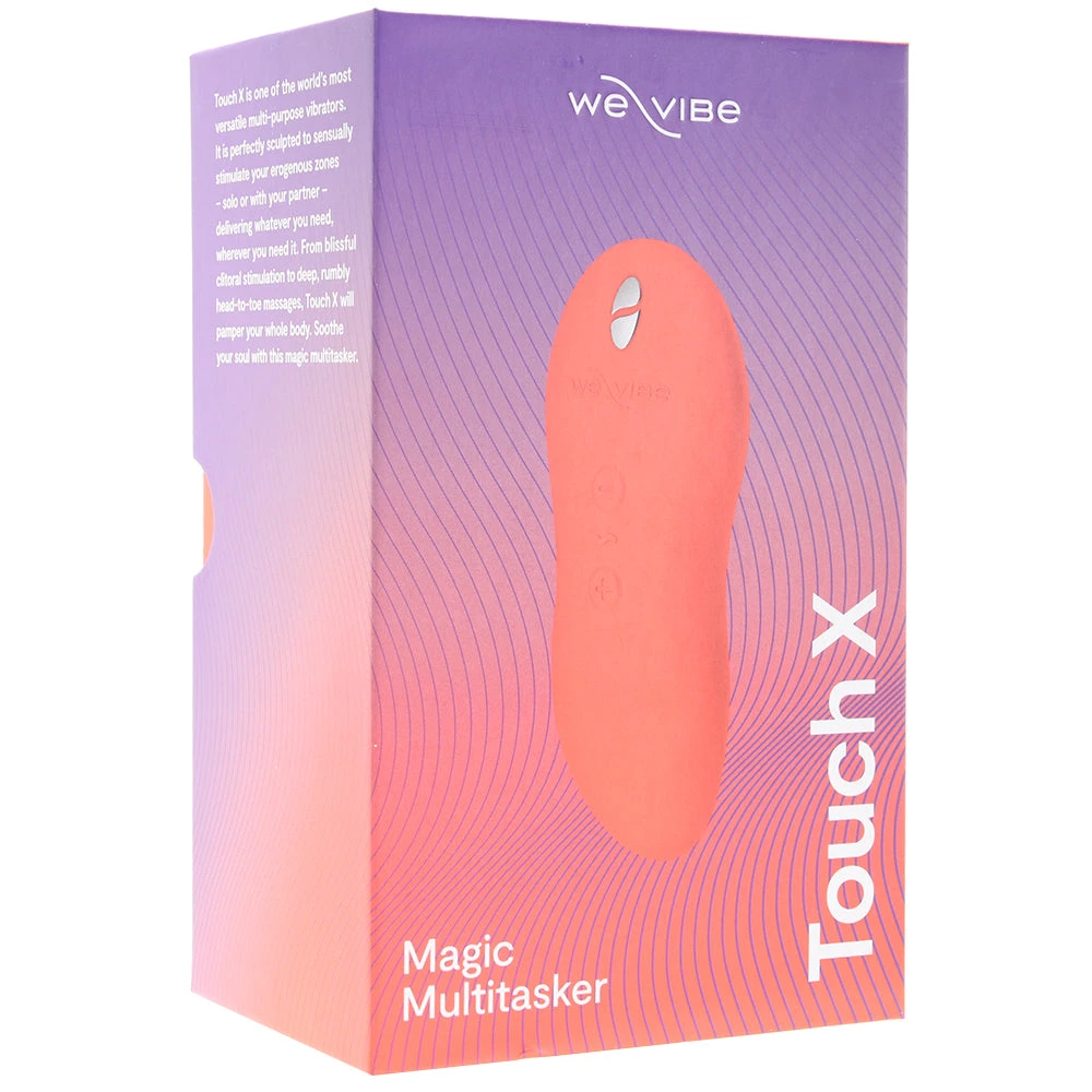 Because you’d expect nothing less than material perfection from We-Vibe, the Touch X comes to you in the the purest, safest silicone. This vibe is ultra hygienic, non-porous and hypoallergenic, plus, it’s easy to clean using warm soapy water or a good toy care fluid/foam. Always choose a great quality water based lubricant to enjoy with your Touch X, and please keep it away from silicone lubes/other silicone and soft toys materials. A silky drawstring storage bag is included to help keep your vibe safe and sound. This vibe is IPX7 waterproof, safe for submersion up to about 3.2′ (1 meter) for no longer than 30 minutes.